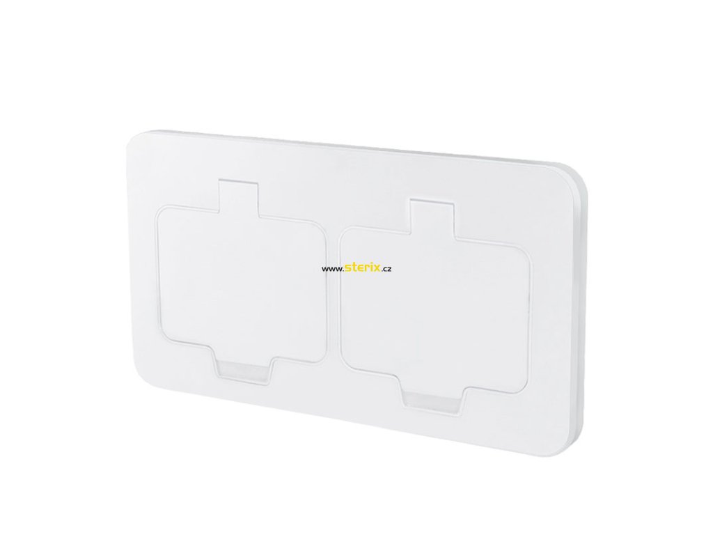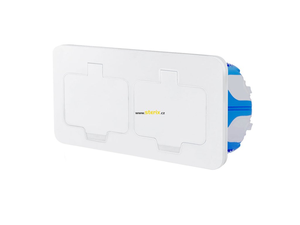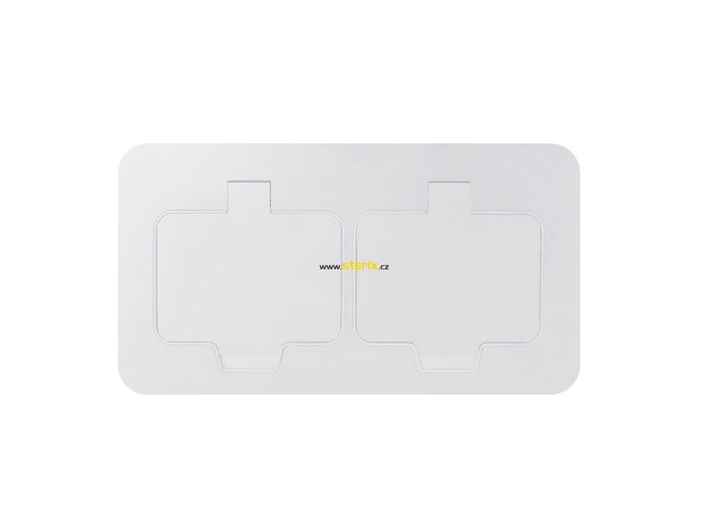 Vestavná podlahová dvojzásuvka, IP55, matná bílá, obdélníkové víčko