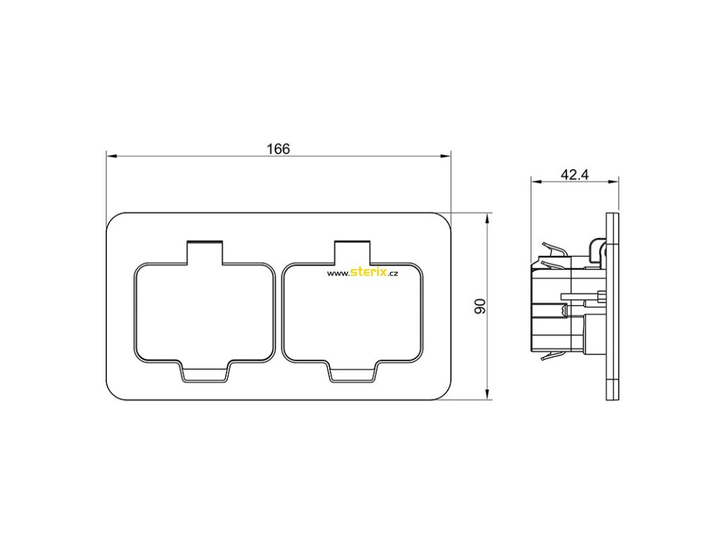 - zásuvka dvojnásobná uzemněná 2x (2P+E), obdélníkový tvar