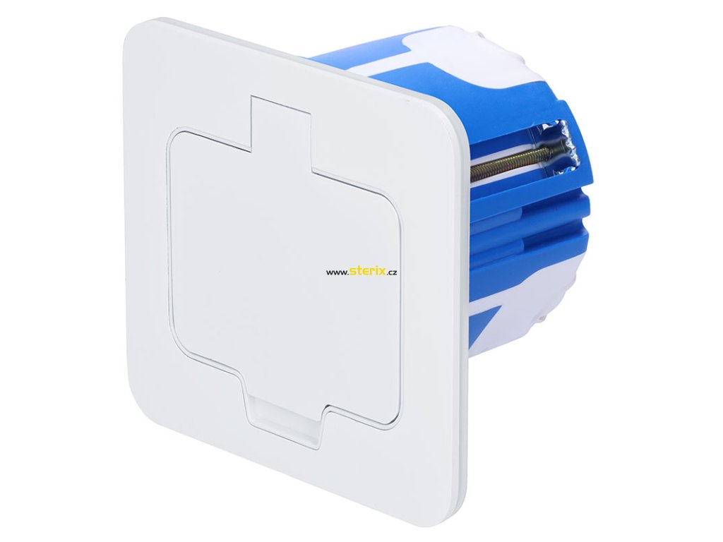 Vestavná podlahová zásuvka, IP55, matná bílá, obdélníkové víčko