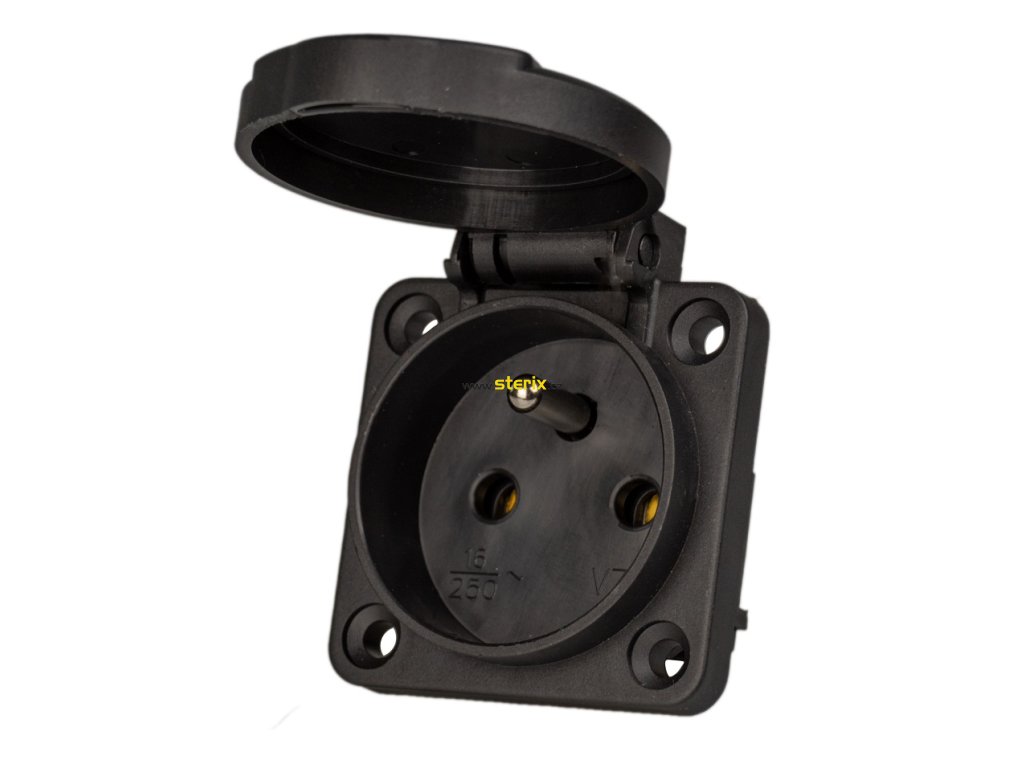 Vestavná zásuvka černá 250 V, IP 54, 16 A, 3-pól