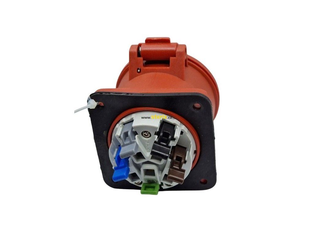 Praktická vestavná zásuvka 32A / 400V (5pólová) v rovném provedení s kompaktní přírubou 75×75 mm a technologií Quick Connect je určena pro rychlé a spolehlivé zapojení v průmyslových instalacích.