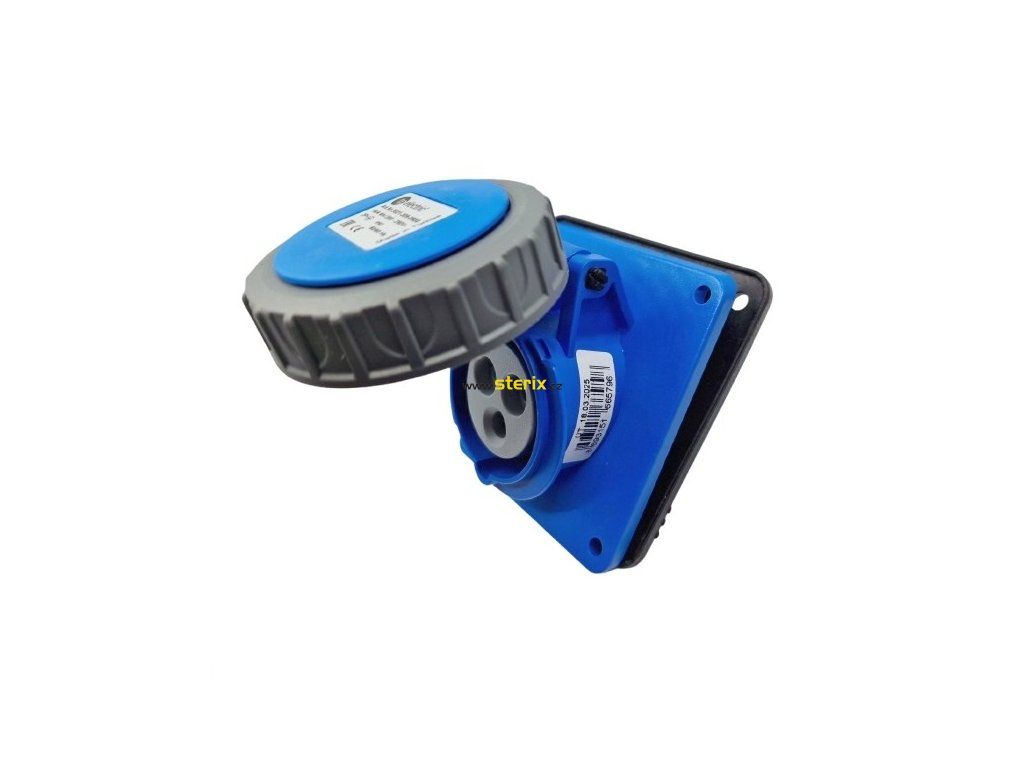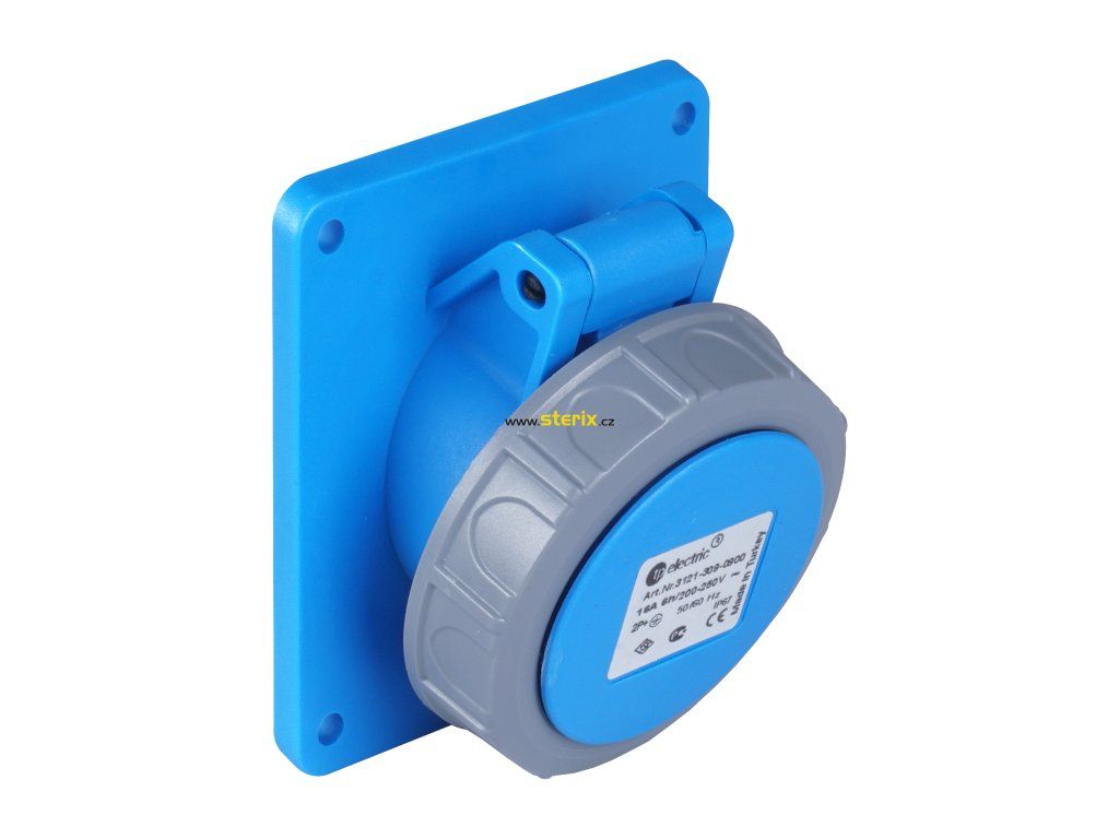 Zásuvka je dimenzována na napětí 250V a proud 16A, což odpovídá standardním požadavkům pro průmyslové aplikace.