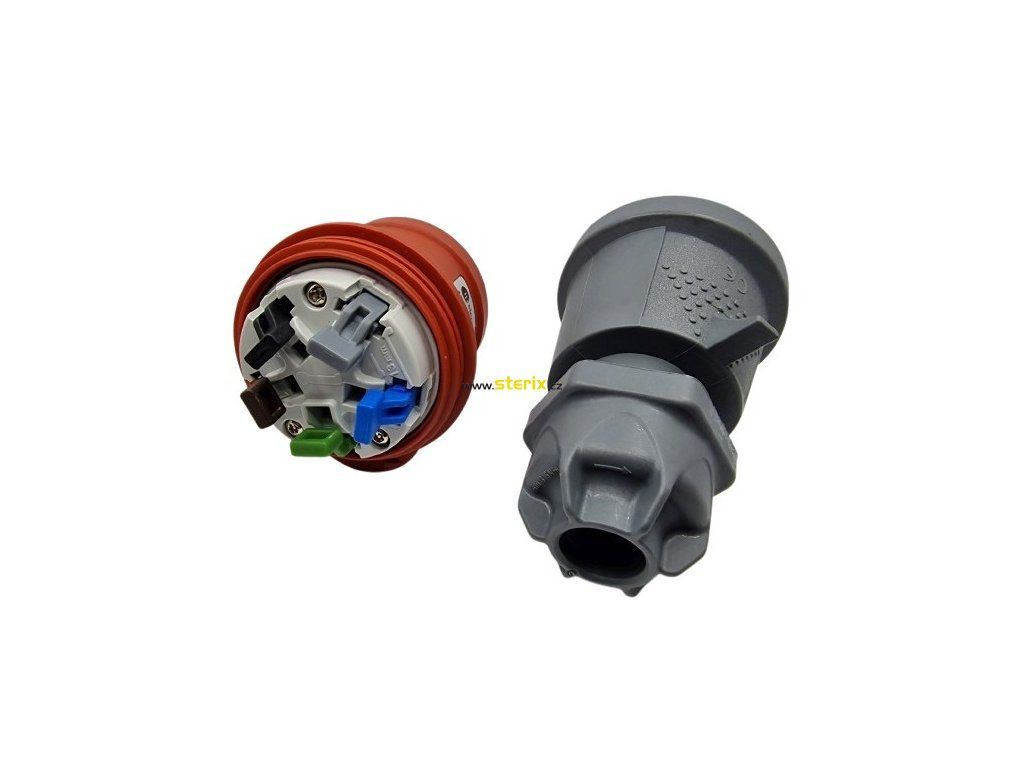 Krytí IP44 poskytuje ochranu proti prachu a stříkající vodě, takže je vidlice vhodná pro běžné průmyslové i venkovní použití. Konstrukce je navržena pro stabilní a bezpečný elektrický kontakt i při častém zapojování.