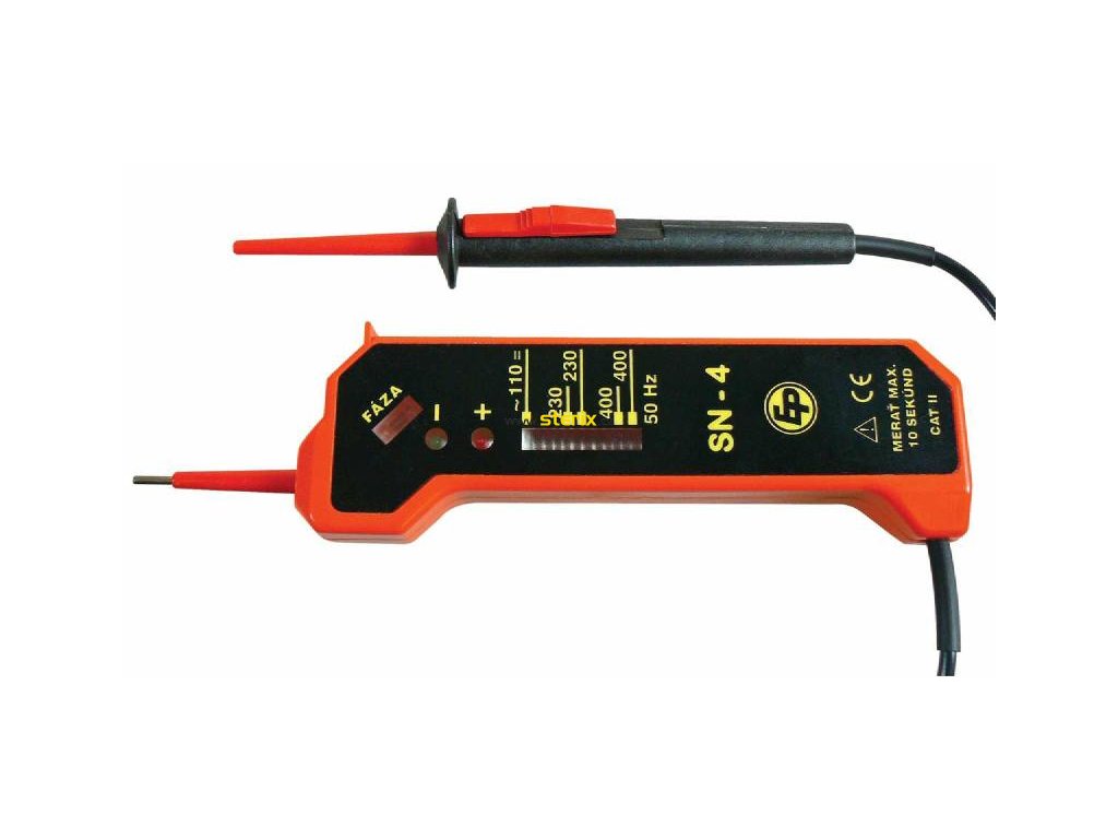 Spolehlivá a přesná diodová zkoušečka obvodů SN-4. Kromě samotného měření napětí zvládne určit fázový vodič a pořadí fází v trojfázové soustavě s nulovým vodičem. Problémem není ani indikace polarity stejnosměrného napětí.