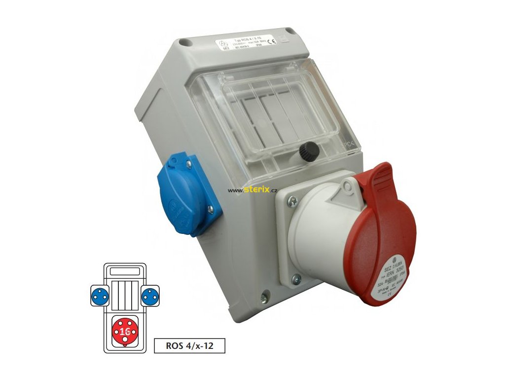 Stavební rozvaděč SEZ ROS 4/X-12 je minizásuvková kombinace osazená zásuvkami 1 x 400V 16A (IEN1653 - 5pól), 2 x 250V 16A (VZ16) bez jištění s přípravou pro jističe na DIN lištu. Venkovní krytí IP 44 pro připojení třífázových i jednofázových elektrických spotřebičů.