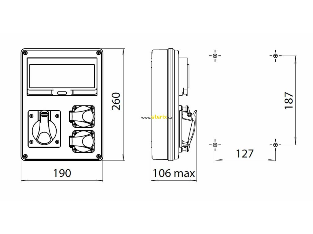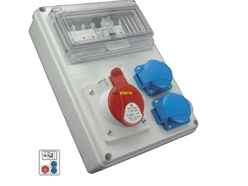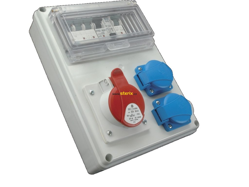 Zásuvková rozvodnice 1x1643+2x230 V, jištěná, s chráničem, IP 44