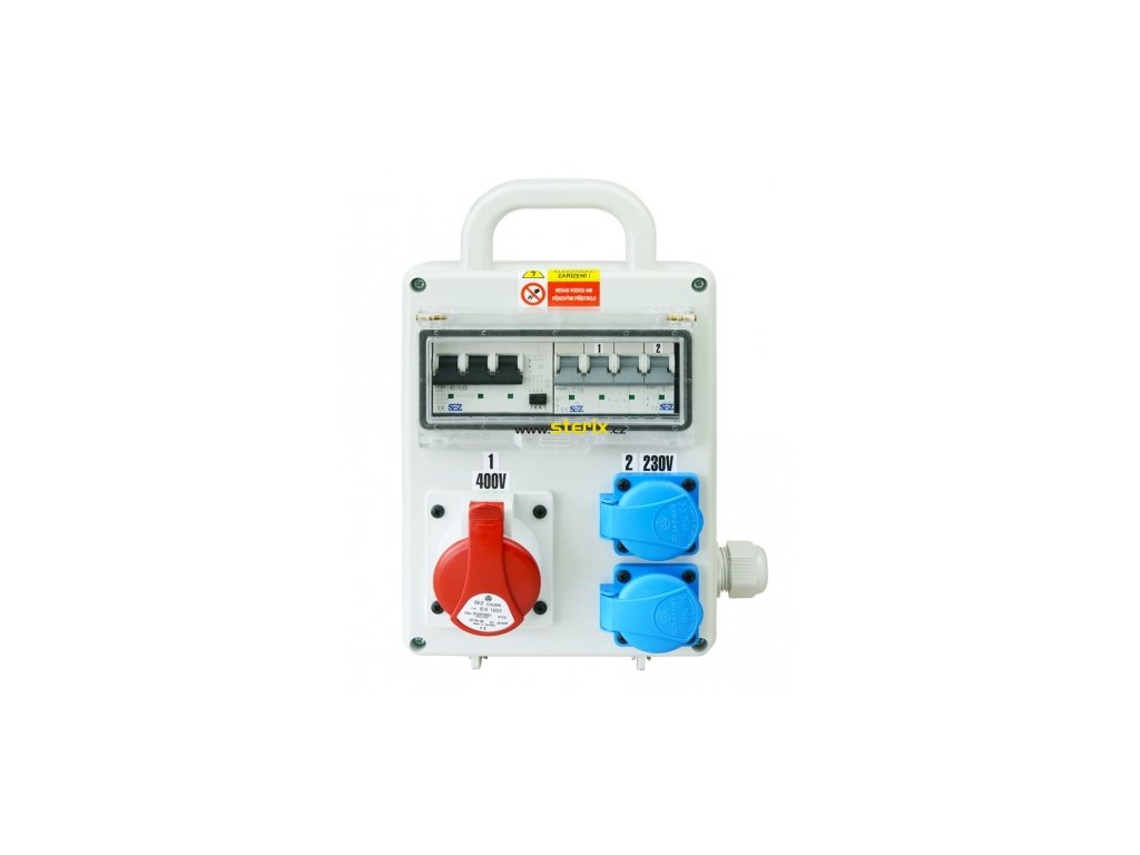 na staveništích, průmyslových rozvodech, apod. - Zásuvková rozvodnice 1x1653+2x230 V s držákem, IP 44, 8 modulové okénko SEZ-CZ ROS X8-1603 D