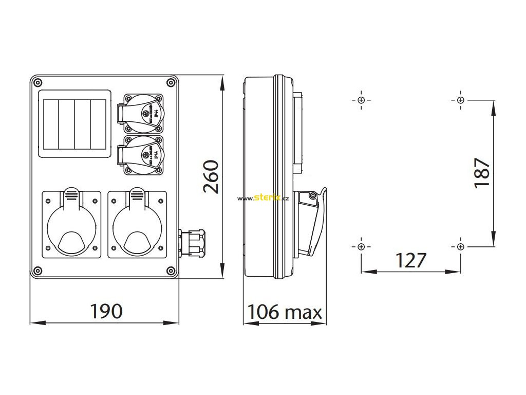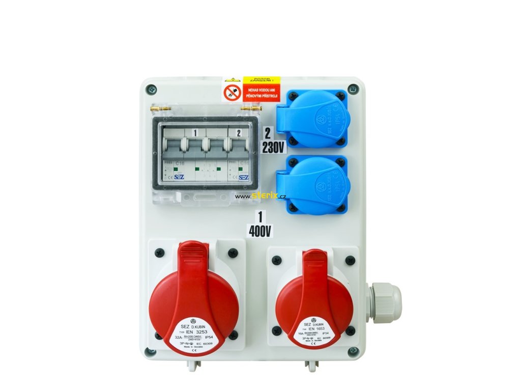 Zásuvková rozvodnice 1x3253+1x1653+2x230 V, jištěná, IP 44