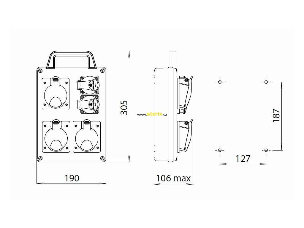 Zásuvková rozvodnice 2x1653+4x230 V s držákem, IP 44