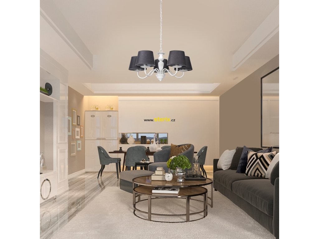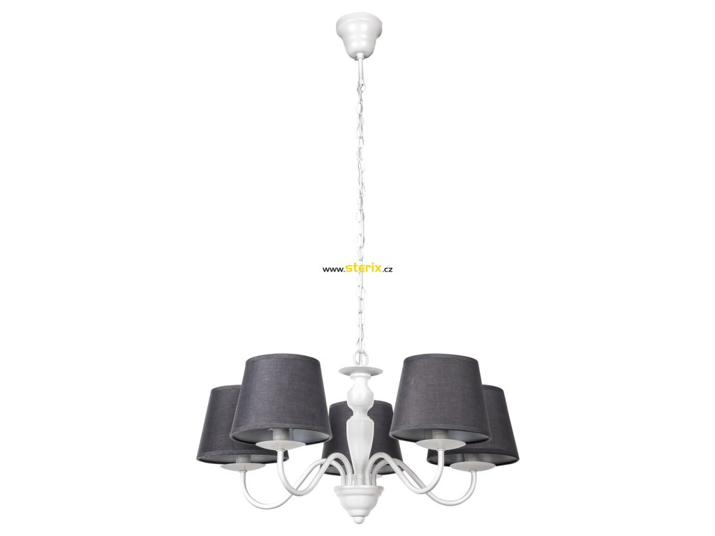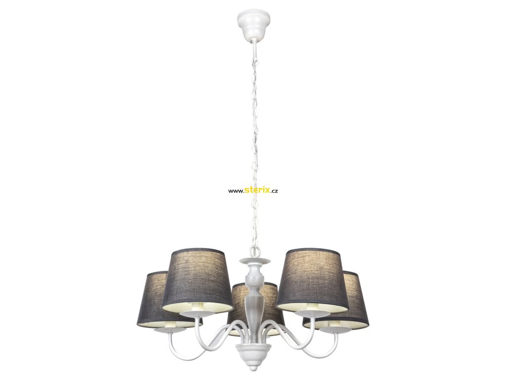 Se svým výrazným tvarem a klasickým stylem bude závěsné svítidlo Flavio dominantním doplňkem k zařízení vašeho obývacího pokoje. Zakřivené větve svítidla jsou zakončeny jednoduchými válcovými stínítky, které se směrem dolů mírně rozšiřují. Bílý rám je vyroben z kovu a šedé stínítko je vyrobeno z textilu. Světlo je jemně filtrované zpod tmavých stínítek, které poskytují dané místnosti nádherné osvětlení. K vytvoření elegantní atmosféry doporučujeme použít světelné zdroje ve tvaru svíčky s přirozeným bílým světlem. Flavio je možné použít s pěti světelnými zdroji s výkonem do 40 W, s paticí typu E14. Rozměry závěsného svítidla jsou: průměr 530 mm, vzdálenost od stropu 1300 mm. Tento romantický model se dodává bez žárovek.