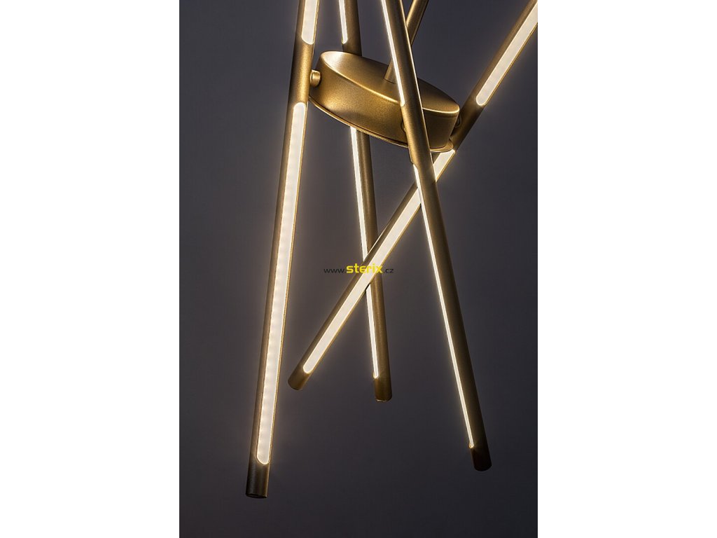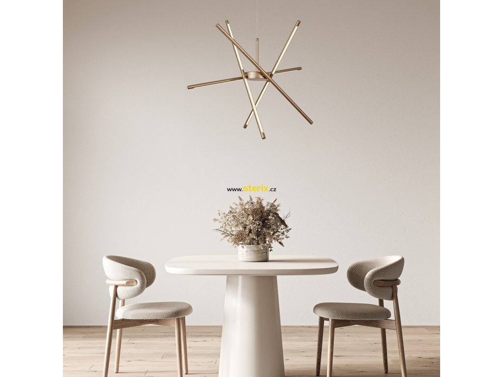 Stropní svítidlo Rabalux Henli 2 je doporučeno těm, kteří považují za důležité moderní a kreativní design i funkčnost. Tento netradiční model je vyroben s kovovou konstrukcí ve zlaté barvě a bílým plastovým stínidlem, a lze jej připevnit ke stropu pomocí kulaté dekorativní základny. Konstrukce svítidla se skládá ze zdánlivě náhodně uspořádaných, dlouhých, tyčovitých prvků, které se v několika bodech protínají. Vzdálenost závěsného svítidla od stropu lze nastavit podle potřeby. Svítidlo má vestavěný LED světelný zdroj, který vyzařuje teplé bílé světlo, a díky vysoké světelné intenzitě je ideální pro osvětlení větších prostor. Je skvělou volbou nejen do obývacího pokoje a ložnice, ale také do jídelny a kuchyně. Díky LED technologii se vyznačuje energeticky úsporným provozem a dlouhou životností.
