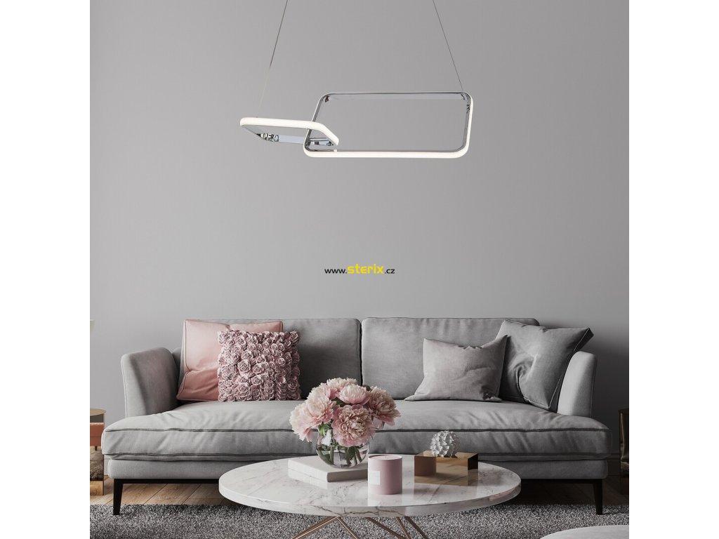 Závěsné svítidlo Rabalux Malwen je doporučeno těm, kteří mají rádi výrazné a neobvyklé designy. Toto závěsné svítidlo je vyrobeno s kovovou konstrukcí v chromové barvě a bílým hliníkovým stínidlem, a lze jej připevnit ke stropu pomocí obdélníkové dekorativní základny v chromové barvě. Hlavní část svítidla tvoří dva různě velké, vzájemně propojené světelné prvky, jejichž čtvercový tvar je změkčen zaoblenými rohy. Závěsné svítidlo má vysokou světelnou intenzitu, díky čemuž je ideální i pro větší místnosti. Díky svému designu rovnoměrně rozptyluje světlo do všech částí místnosti. Je perfektní volbou do moderních obývacích pokojů, kuchyní, jídelen a ložnic. Svítidlo obsahuje vestavěný LED světelný zdroj, který vyzařuje přirozené bílé světlo. Díky LED technologii se vyznačuje energeticky úsporným provozem a dlouhou životností.