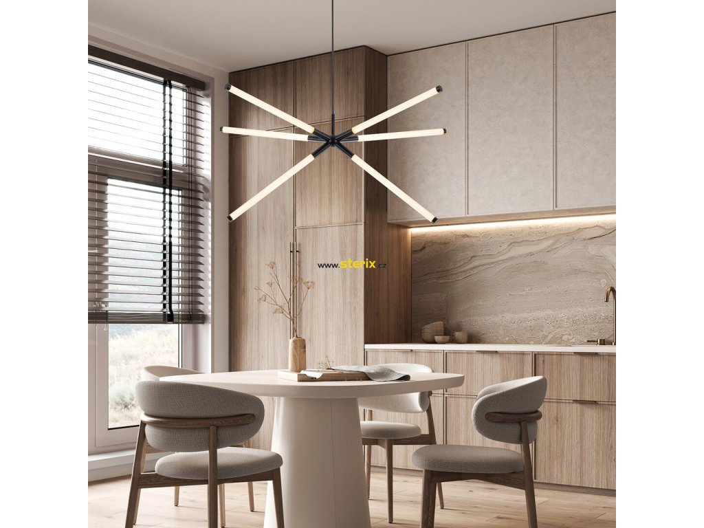 Závěsné svítidlo Rabalux Nivaro je doporučeno těm, kteří preferují modely kombinující minimalistický styl s kreativním designem. Toto závěsné svítidlo se skládá z jednoduchých trubicových prvků, které vycházejí ze středu konstrukce a vytvářejí tvar připomínající hvězdu. Konstrukce je vyrobena z kovu v černé barvě, zatímco stínidla jsou z bílého akrylu. Svítidlo lze připevnit ke stropu pomocí malé kulaté dekorativní základny. Obsahuje vestavěný LED světelný zdroj, který vyzařuje teplé bílé světlo, přispívající k útulné a intimní atmosféře. Je ideální do obývacího pokoje, jídelny, kuchyně nebo ložnice. Díky vynikající světelné intenzitě je toto závěsné svítidlo schopné efektivně osvětlit i prostornou místnost. Díky LED technologii se vyznačuje energeticky úsporným provozem a dlouhou životností.