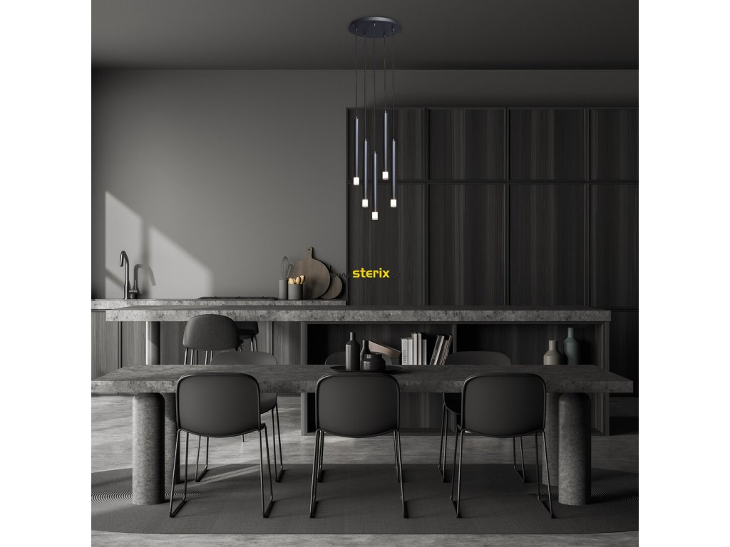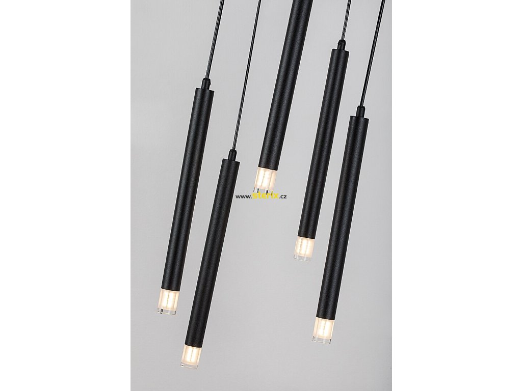 Závěsné svítidlo Rabalux Ramira s pěti žárovkami je doporučeno těm, kteří hledají minimalistické závěsné svítidlo, které lze integrovat do téměř jakékoli místnosti moderního domova. Svítidlo je vyrobeno z kovu v černé barvě s průhlednými akrylovými stínidly a velkou kulatou dekorativní základnou. Světelné prvky mají trubicovitý, válcový tvar a jsou zavěšeny v různých výškách, což dodává svítidlu dynamický vzhled. Tento model je ideální volbou do obývacího pokoje, kuchyně, jídelny nebo ložnice. Můžete jej umístit nad jídelní stůl nebo nad postel. Závěsné svítidlo lze použít s pěti žárovkami, každou o výkonu až 5 W. Typ objímky je G9. Lze si vybrat světelné zdroje vyzařující teplé nebo přirozené bílé světlo. Svítidlo se dodává bez světelných zdrojů.