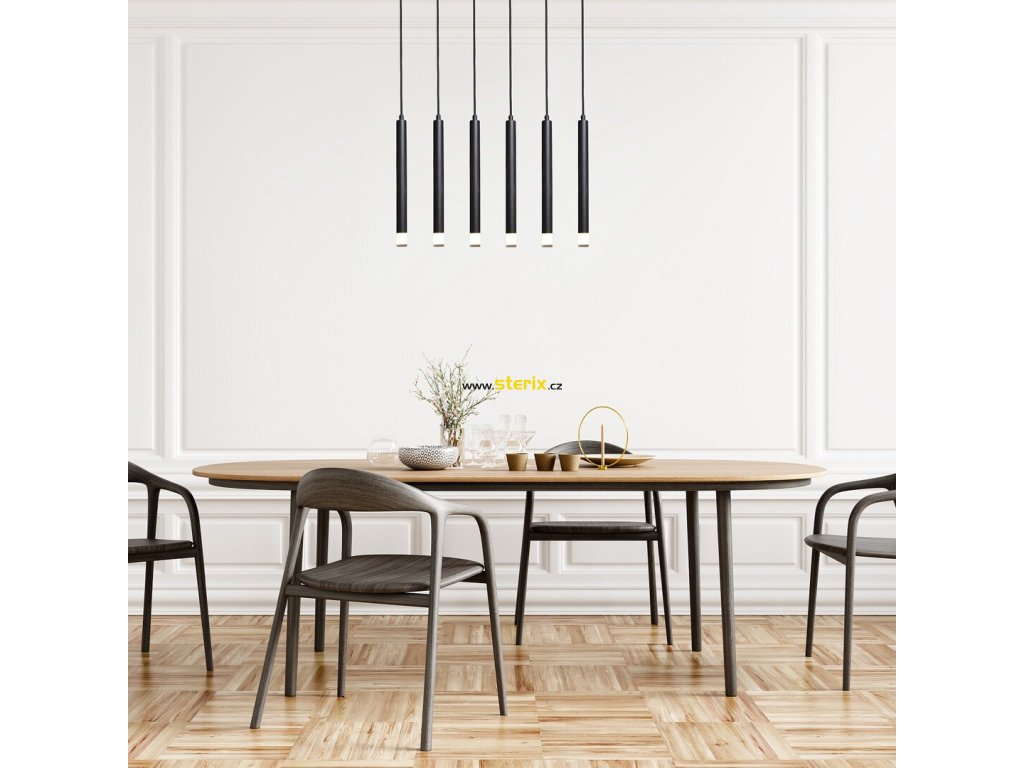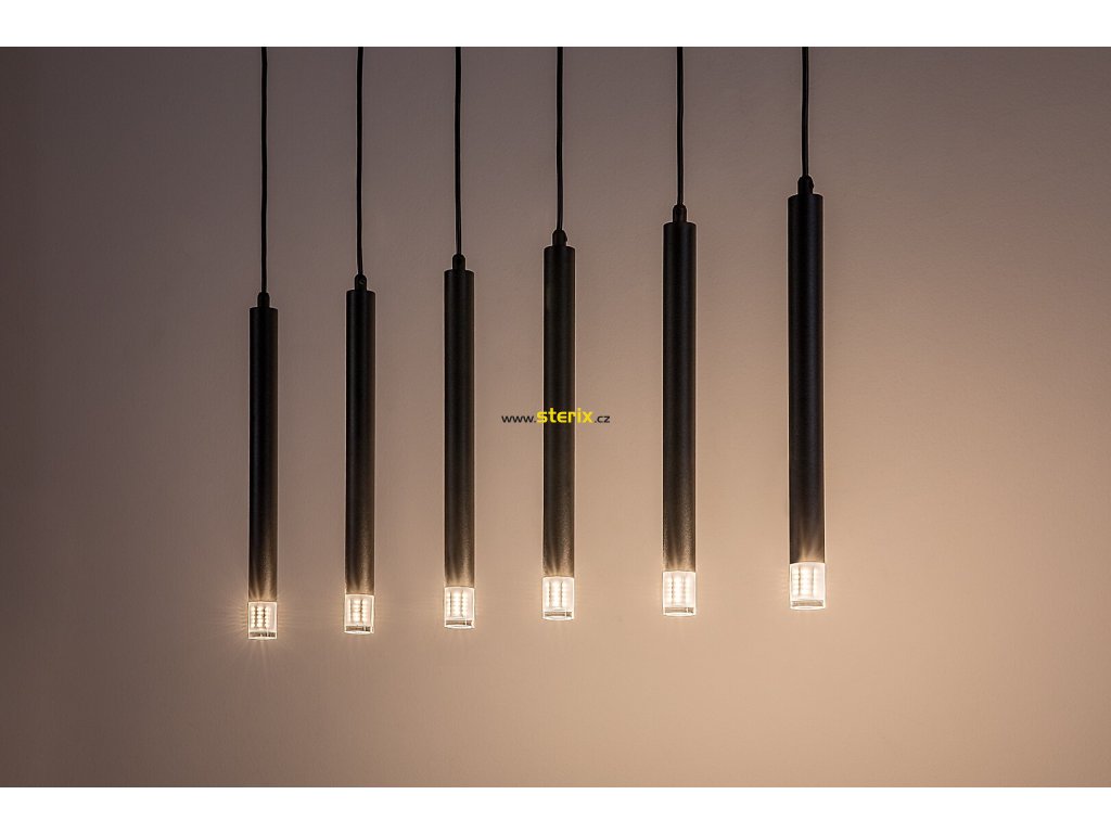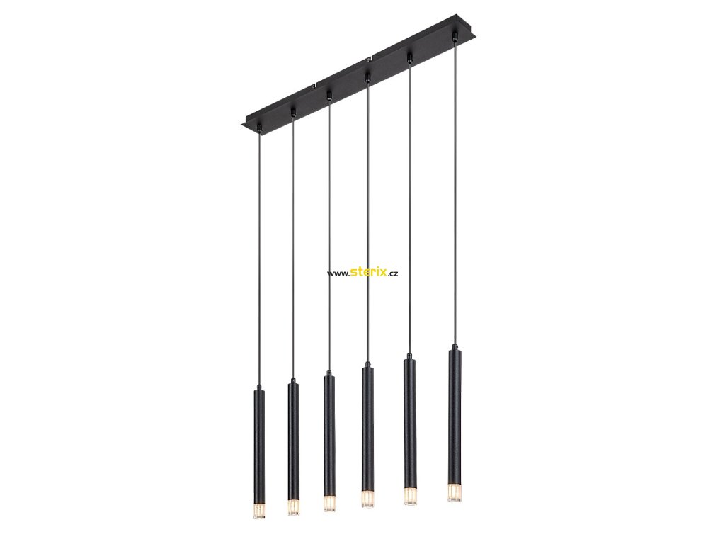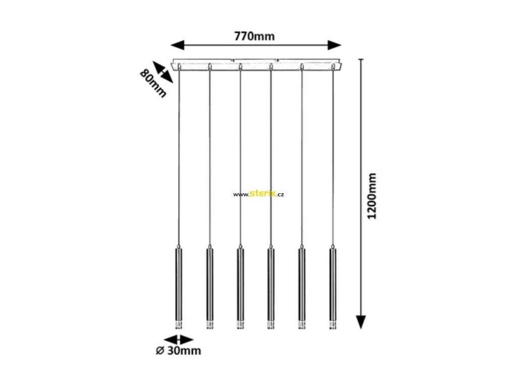 Závěsné svítidlo Rabalux Ramira s šesti žárovkami je ideální volbou pro ty, kteří hledají moderní, minimalistické závěsné svítidlo, které lze snadno integrovat do téměř jakékoli místnosti v domácnosti. Svítidlo je vyrobeno z kovu v černé barvě a doplněno průhlednými akrylovými stínidly a dlouhou čtvercovou dekorativní základnou. Světelné prvky mají malý průměr, trubicovitý, válcový tvar a jsou uspořádány vedle sebe v jedné řadě. Tento univerzální model je doporučen nejen do obývacího pokoje, kuchyně a jídelny, ale také do ložnice. Závěsné svítidlo lze použít se šesti žárovkami, každou o výkonu až 5 W. Typ objímky je G9. V závislosti na místnosti, kam chcete svítidlo instalovat, si můžete vybrat žárovky vyzařující teplé nebo přirozené bílé světlo. Závěsné svítidlo se dodává bez světelných zdrojů.