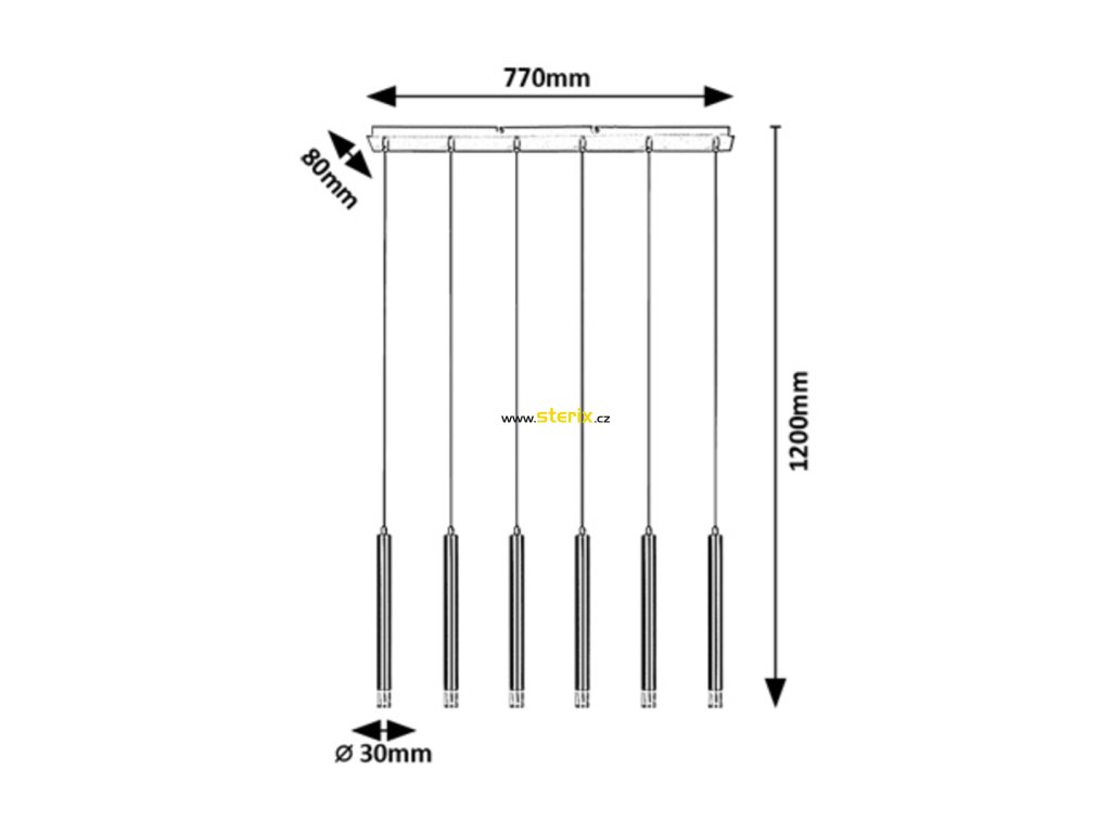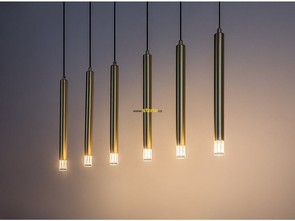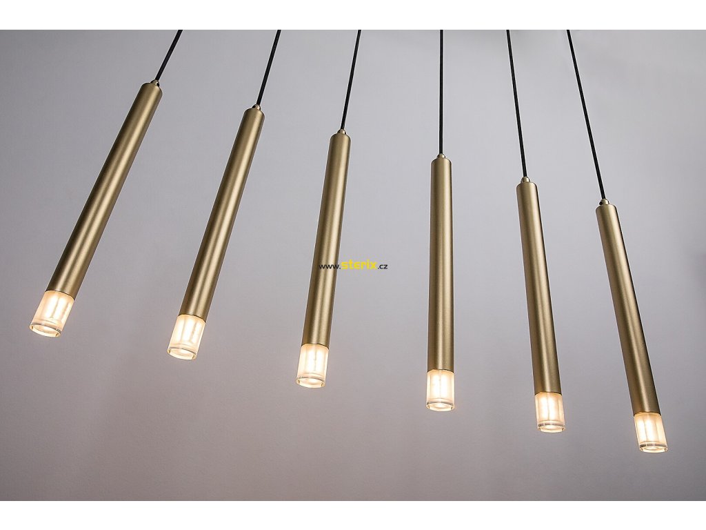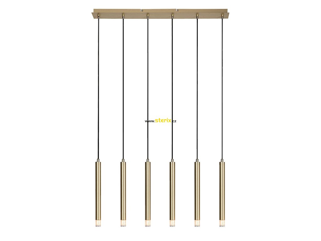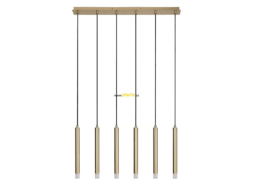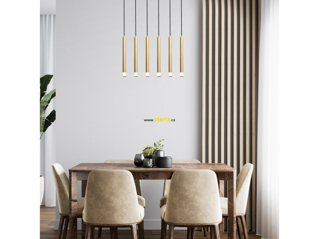Závěsné svítidlo Rabalux Ramira s šesti žárovkami je ideální volbou pro ty, kteří hledají moderní, minimalistické závěsné svítidlo, které lze snadno integrovat do téměř jakékoli místnosti v domácnosti. Svítidlo je vyrobeno z kovu v elegantní zlaté barvě a doplněno průhlednými akrylovými stínidly a dlouhou čtvercovou dekorativní základnou ve stejné barvě jako světelné prvky. Světelné prvky mají malý průměr, trubicovitý, válcový tvar a jsou uspořádány vedle sebe v jedné řadě. Tento univerzální model je doporučen nejen do obývacího pokoje, kuchyně a jídelny, ale také do ložnice. Závěsné svítidlo lze použít se šesti žárovkami, každou o výkonu až 5 W. Typ objímky je G9. Lze si vybrat světelné zdroje vyzařující teplé nebo přirozené bílé světlo. Závěsné svítidlo se dodává bez světelných zdrojů.