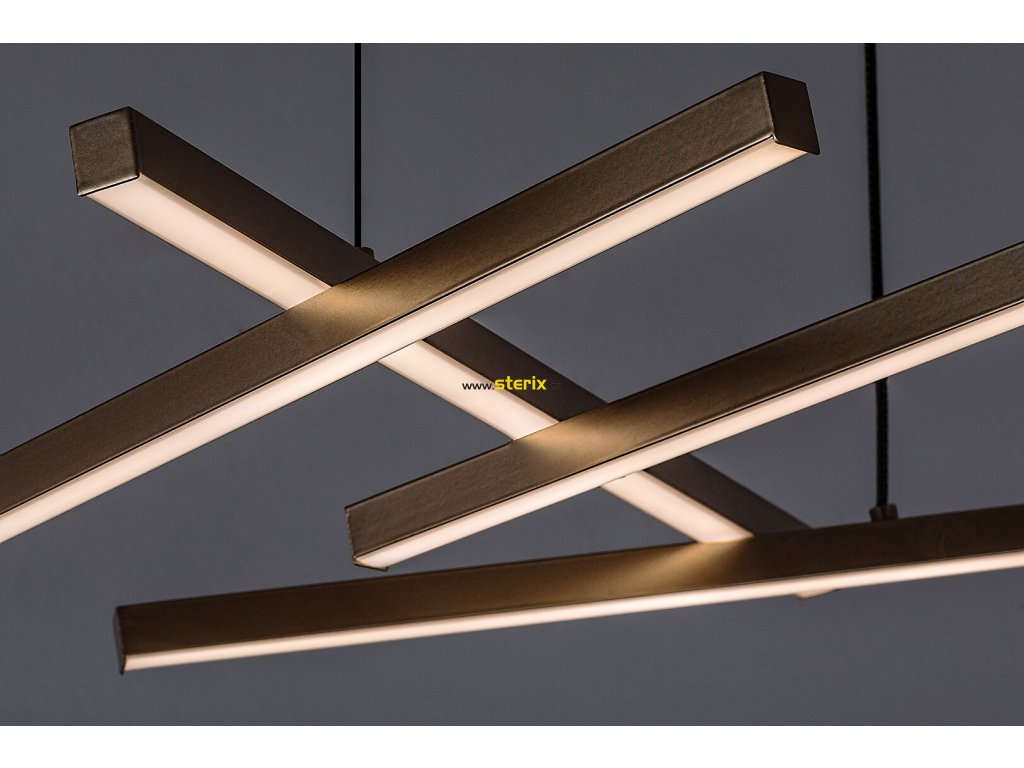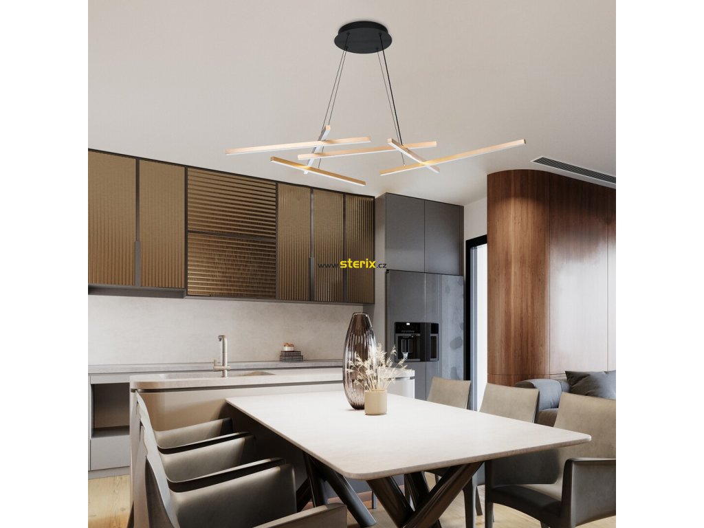Závěsné svítidlo Rabalux Severine je doporučeno těm, kteří si cení kreativního designu i rozsáhlé funkčnosti. Tento poutavý model je vyroben z kovu v zářivé černo-zlaté barevné kombinaci, doplněn bílým plastovým stínidlem a lze jej připevnit ke stropu pomocí kulaté černé dekorativní základny. Unikátně navržená konstrukce se skládá z pěti dlouhých, čtvercových tyčových prvků, které jsou zdánlivě náhodně uspořádány. Stropní svítidlo obsahuje vestavěný LED světelný zdroj, jehož teplotu barvy lze měnit pomocí dálkového ovládání nebo nástěnného vypínače. Světelná intenzita, funkce paměti, časovač a noční osvětlení lze rovněž nastavit pomocí dálkového ovladače. Díky LED technologii se svítidlo vyznačuje energeticky úsporným provozem a dlouhou životností. Je ideální volbou pro obývací pokoj, ložnici nebo pracovnu.