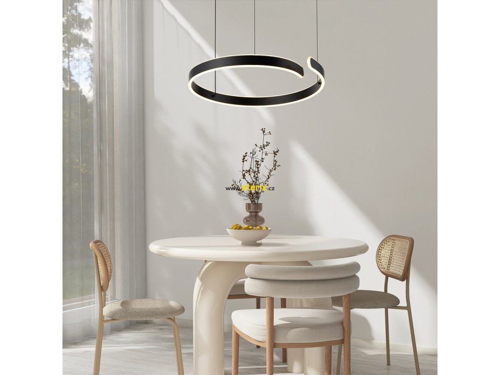 Závěsné svítidlo Rabalux Silnora je doporučeno těm, kteří hledají chytré svítidlo s čistým designem a vysokou světelnou intenzitou. Toto moderní závěsné svítidlo je vyrobeno v černé barvě s kovovou konstrukcí a bílým silikonovým stínidlem. Jednoduchý design svítidla oživuje nedokončený kruhový tvar. Lze jej připevnit ke stropu pomocí malé kulaté dekorativní základny a obsahuje vestavěný LED světelný zdroj se třemi nastaveními teploty barvy, které lze měnit pomocí DIP přepínače. Díky možnosti přizpůsobení teploty barvy podle vaší aktivity je tento model ideální do obývacího pokoje, ložnice i pracovny. Díky vynikající světelné intenzitě je perfektní i pro prostornější místnosti. Díky LED technologii se vyznačuje energeticky úsporným provozem a dlouhou životností.