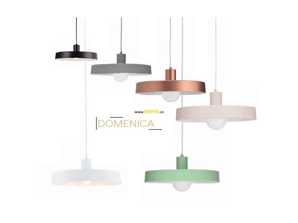 Závěsné kovové svítidlo DOMENICA, barva světle růžová a bílá, objímka pro patici E27, příkon klasického světelného zdroje max. 60W, IP20.- Svítidlo vyrobeno z kovu v barvě mentolově zelené a bílé