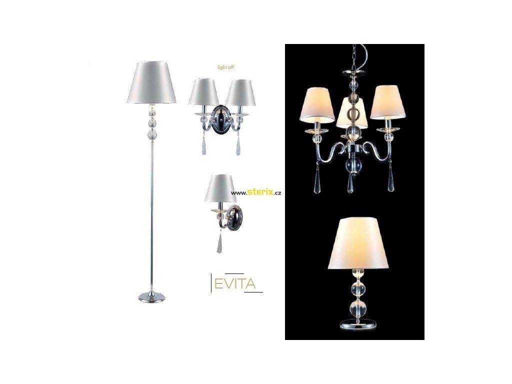 Stropní závěsné svítidlo EVITA max. 5x40W, 5x objímka pro patici E14, barva stříbrná perla+chromu a čirá, IP20.