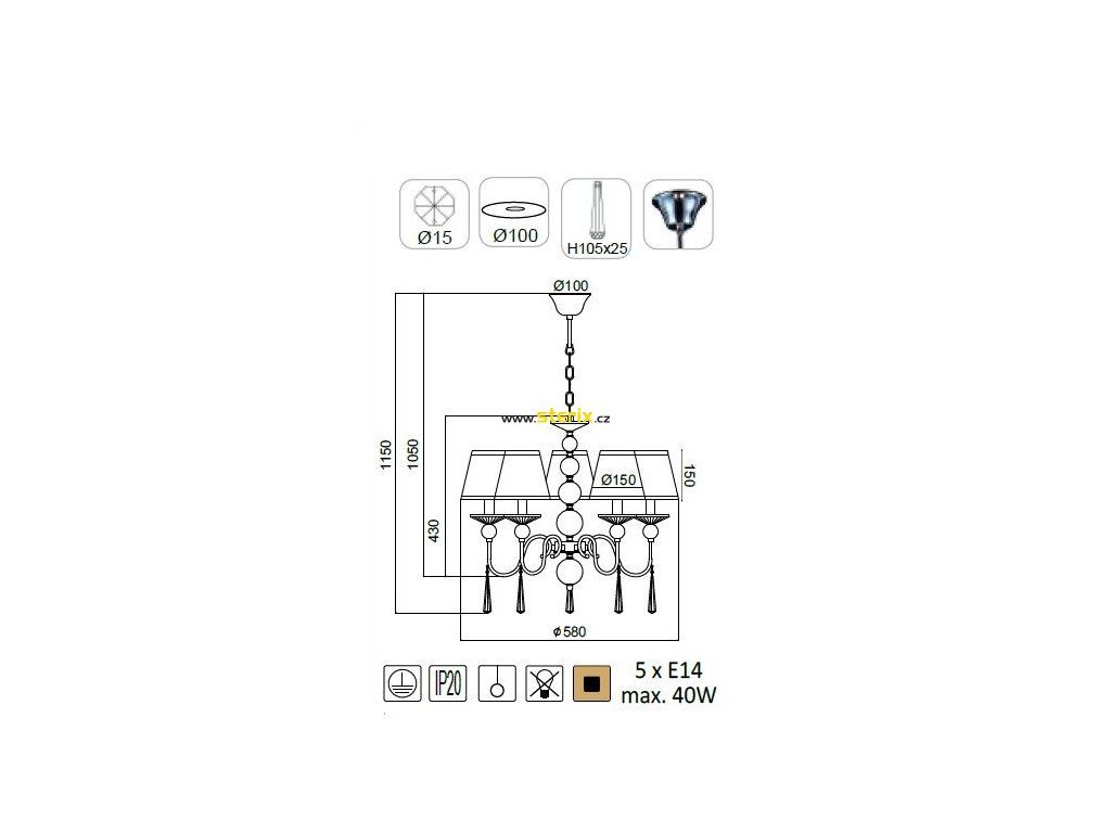 Závěsné svítidlo EVITA max. 5x40W/E14/230V/IP20